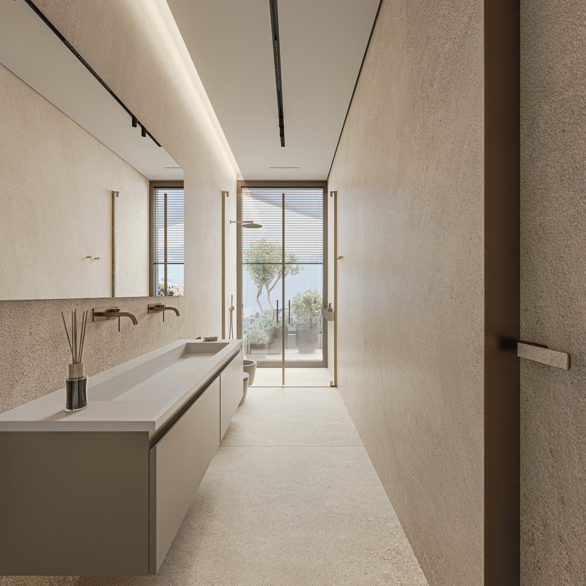 Stepping outside, one can enjoy landscaped gardens and several terraces with ample areas for outdoor relaxation. The centerpiece is the spectacular infinity pool, which appears to merge with the horizon, offering the perfect place to cool off and enjoy the Mediterranean sun.