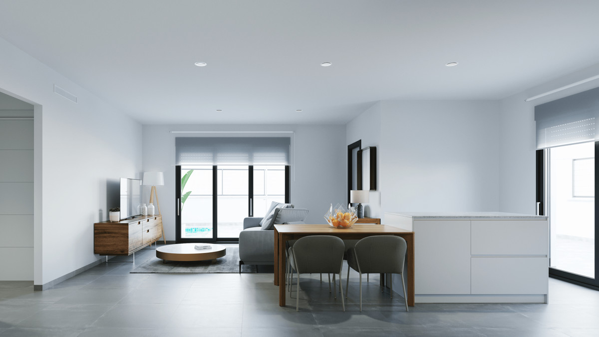The development is a luxury complex of 8 terraced villas with 2 bedrooms and 2/3 bathrooms, private pool and parking space on the plot. The houses have terraced area on the ground floor and a large solarium with Summer kitchen on the top floor which allows enjoying all hours of sun, every day of the year.